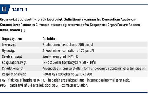 alment anerkendt definition, men CANONIC-studiet [1], et europæisk studie med > 1.300 patienter med dekompenseret cirrose, har udmøntet sig i en operationel definition af tilstanden, og definitionen er efterfølgende valideret i andre studier [2, 3]. Denne artikel bygger vidtgående på denne europæiske definition,