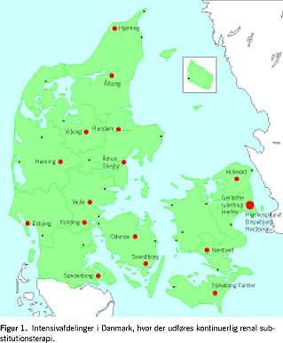 Efter introduktion af kontinuerlig renal substitutionsterapi (CRRT) på danske intensivafdelinger (Figur 1) kan man behandle kritisk syge patienter med ARF, uden at kredsløbet bliver ustabilt. Patienterne dør således ikke mere under eller pga. den blodrensende behandling, men af ekstrarenale årsager, typisk kardiopulmonale komplikationer. I flere undersøgelser har man samstemmende vist, at ARF er en selvstændig risikofaktor for død på intensivafdelinger. Metnitz et al [7] observerede, at mortaliteten hos de patienter, som fik ARF, var 62,8% sammenlignet med 5,6% hos de kritisk syge patienter, som bevarede deres nyrefunktion. Selv om data blev justeret for komorbiditet, var mortaliteten fortsat signifikant øget hos patienter, som fik ARF. Som forklaring har man i flere dyreksperimentelle undersøgelser observeret, at ARF i modsætning til kronisk nyresvigt påvirker immunsystemet med effekt på ekstrarenale organer. Kelly et al [8] kunne f.eks. påvise, at ARF inducerede forhøjede koncentrationer af de proinflammatoriske cytokiner i hjertet med nedsat kontraktilitet bedømt ved ekkokardiografi og leukocytaktivering i hjerte, lever og lunger.