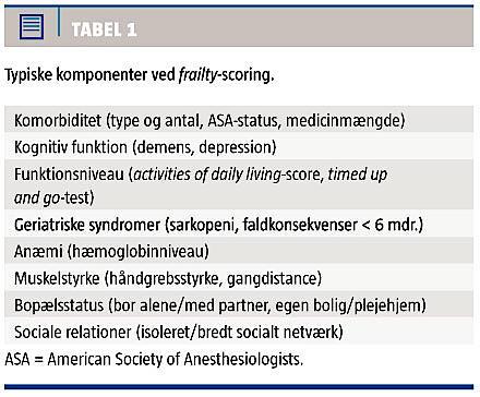 Især er der øget fokus på frailty, en kombination af geriatriske syndromer og komorbiditet, der er relateret til forværret postoperativt udkomme [6, 7] (Tabel 1).