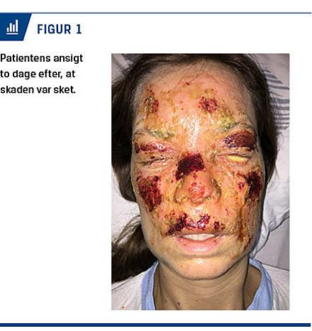 To dage efter blev patienten tilset på Brandsårsaf-delingen på Rigshospitalet pga. mistanke om infektion i brandsåret (Figur 1). Brandsårets areal var ca. 3% af hudoverfladen, lokaliseret til ansigtet alene. Der var