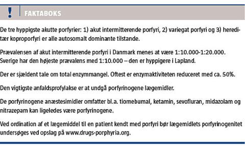 faste, anæstesi eller andre porfyrinogene lægemidler. Personer, der ikke ved, at de er disponerede, udgør en særlig risikogruppe.