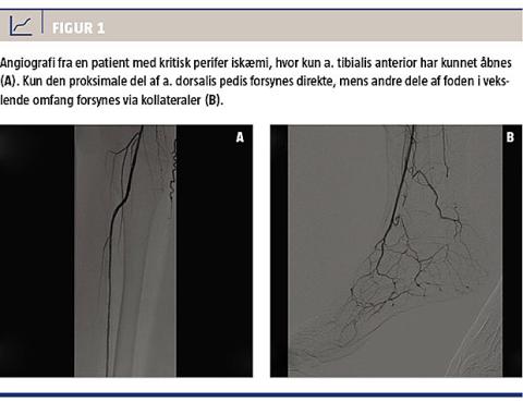 Perifer arteriel okklusiv sygdom, som medfører nedsat blodomløb i benene, er en almindeligt forekommende lidelse, der rammer 3-10% af befolkningen stigende til 15-20% af personer over 70 år [1]. Den underliggende årsag er i langt de fleste tilfælde aterosklerose. De kliniske manifestationer spænder fra det helt asymptomatiske over claudicatiosymptomer med faldende gangdistance til hvilesmerter, ikkehelende sår og gangræn. De sværeste manifestationer kaldes samlet for kritisk ekstremitetsiskæmi. Uden revaskulariserende behandling vil patienter med denne lidelse have behov for amputation af den ramte ekstremitet. Amputationer på grund af kritisk iskæmi er en væsentlig årsag til tab af livskvalitet og store samfundsmæssige udgifter [2]. Revaskulariserende behandling for kritisk iskæmi, der er forårsaget af forsnævringer eller aflukninger distalt for lyskekarrene, kan udføres enten som bypassoperation på benet eller endovaskulært med angioplastik evt. udført med stent eller drugcoatede balloner.