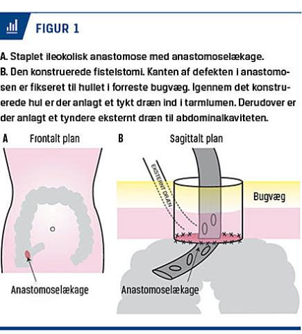 Anastomoselækage er en hyppig og alvorlig komplikation i forbindelse med kolorektal kirurgi [1]. Ved behandling af større og operationskrævende anastomoselækage med generaliseret peritonitis anbefales i dag resektion af anastomosen og etablering af stomi ved selve defekten eller proksimalt herfor [2, 3].