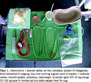 Man lytter til sonden ved at føre studsen til øret. Ved respira-tionslyd må sonden lægges om. Herefter kontrolleres sondens beliggenhed ved aspiration, og der skal være tydeligt ventrikelindhold.