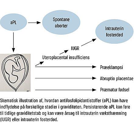 Ca. 70% af graviditeterne hos kvinder med APS ender med en fødsel. De vigtigste komplikationer hos gravide kvinder med APS er spontane tidlige eller sene graviditetstab, præeklampsi, neonatal død, præmatur fødsel og intrauterin væksthæmning. Behandlingen baseres i høj grad på acetylsalicylsyre og LMWH. Et velkendt antimalariamiddel, HCQ, har en lovende effekt på graviditetsudfaldet hos kvinder med APS, hvilket nu un-dersøges nærmere i et randomiseret kontrolleret multicenterstudie.