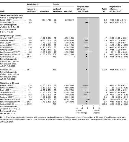 <li>Herbison P, Hay-Smith J, Ellis G et al. Effectiveness of anticholinergic drugs compared with placebo in the treatment of overactive bladder: systematic review. BMJ 2003;326:841-4.</li>