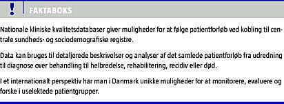 Med sine op mod 50 kliniske kvalitetsdatabaser indtager Danmark en ganske særlig status i forhold til mange andre lande. Dette skyldes ikke mindst, at mange af databaserne indeholder detaljerede klinisk orienterede data med relation til det samlede patientforløb gennem behandlingssystemet - fra udredning over diagnose til behandling, der fører til helbredelse, rehabilitering, recidiv eller død. Samtidig har vi i Danmark unikke muligheder for kobling til centralt administrerede registre, herunder mulighed for opfølgning af vitalstatus, og til en lang række oplysninger, der er af betydning for vurdering af sygdomsforløbet.
