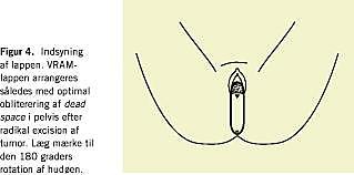 Der findes beskrevet adskillige rekonstruktionsmetoder til vaginoperinealdefekter, inklusive fri mikrovaskulær rekonstruktion [13, 14]. Denne teknik bør reserveres til særlige forhold, hvor anden stilket rekonstruktion er begrænset. Ved stilket transponering af væv eksisterer der flere alternative metoder, muskulokutane eller fasciokutane lapplastikker til vagino-perineal rekonstruktion [15-17]. Anvendelse af gracilis muskulokutan lapplastik er et alternativ, men vulnerabel vaskularisation af lappen og rapportering af en uacceptabel komplikationsrate gør lappen til et sekundært valg [18]. Nødvendigheden af voluminøs lap til obliterering af dead space i pelvis, specielt hos patienter med septikæmi eller patienter, der tidligere er eksponeret for strålebehandling, gør VRAM-lappen attraktiv.