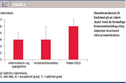 kombineret med planlægning af den videre udredningsplan. Ved den samlede vurdering indgår såvel udførelsen af den kliniske færdighed som evnen til at interagere med patient (figurant) og kollega (eksaminator). OSCE som led i lægeuddannelsen sætter øget fokus på kliniske færdigheder, som i tidligere publikationer er fundet utilstrækkelige ved egenvurdering blandt nyuddannede læger [2, 3].