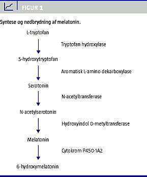 Melatonin (N-acetyl 5-methoxytryptamin) er et lipofilt indolderivat, der primært produceres i corpus pineale samt i retina og visse planter. Melatonin produceres ud fra aminosyren tryptofan (Figur 1 ) og secerneres med døgnrytmevariation, idet koncentrationen af hormonet er højest om natten og næsten umåleligt om dagen. Mest undersøgt er funktionen af melatonin på kroppens døgnrytmer, og det er godkendt til korttidsbehandling af primær søvnløshed og dårlig søvnkvalitet hos personer over 55 år. Melatonin bruges i denne sammenhæng både til behandling af jetlag, søvnforstyrrelser hos skifteholdsarbejdere og til blinde, for at de kan opretholde en normal døgnrytme. Ud over effekten på døgnrytme- og søvnforstyrrelser er det i kliniske studier vist, at melatonin har en anxiolytisk, analgetisk og sedativ effekt i forbindelse med kirurgi.