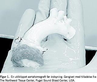 En aortahomograft er en aortaklap med tilhørende aortarod fra et menneske (Figur 1 ). Homograften er udtaget fra en donor og behandlet med antibiotika og opbevares nedfrosset i en homograftbank indtil brug. Der findes ingen vævsbanker, hvor man producerer homografter i Danmark. Aortahomografterne anvendes hovedsageligt ved akut endokarditis, hvor der er svær destruktion af aortaklappen med paravalvulær abscesdannelse og fistler eller proteseendokarditis, hvor en inficeret aortaklapprotese skal udskiftes. Ubehandlet er dødeligheden ved disse tilstande næsten 100% [1]. Disse operationer er teknisk vanskelige og foretages sjældent på de seks hjertekirurgiske centre i Danmark.