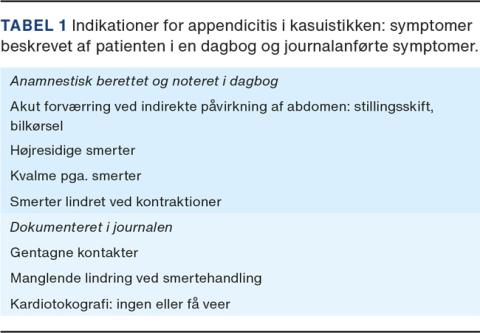 Fejldiagnosticeret appendicitis under graviditeten er forbundet med betydelig risiko for komplikationer inklusive perinatal død [1]. Incidensen for appendicitis er den samme hos gravide som hos ikke gravide [2]. Hos patienten i denne sygehistorie blev peritonitissymptomer ved gentagne henvendelser tolket som fødselsrelaterede smerter af jordemoderen, vagtlægen og obstetrikeren.