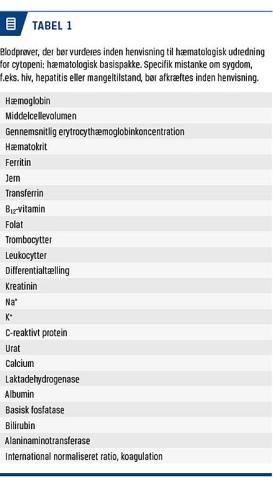 sådan henvisning kræves der oftest en bred blodprøvescreening for at fastslå, om videre udredning for hæmatologisk sygdom er primært indiceret (Tabel 1).