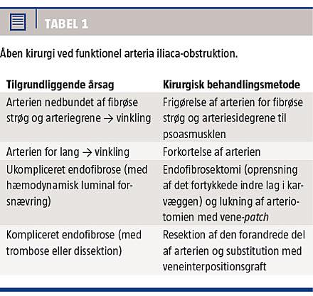 Endovaskulær behandling af funktionel arteria iliaca-obstruktion er sparsomt beskrevet, men der har været advokeret for en hvis tilbageholdenhed pga. restenose, intimaldissektion og stentfraktur [1, 3-5, 12, 14].