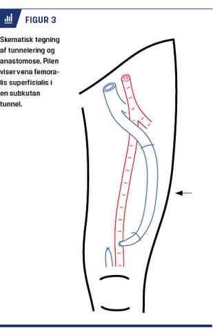 Imidlertid er anvendelse af autolog vene hos selekterede patienter en mere fordelagtig VA med højere patency og lavere infektionsrate. Man har i årtier kendt til anvendelse af vena saphena magna som graftmateriale, men i litteraturen er der kun beskrevet dårlige resultater [15]. Eneste mulighed for autologt materiale på underekstremiteterne er derfor vena femoralis superficialis, men på trods af at der er beskrevet opmuntrende resultater i litteraturen over de seneste ti år, udføres operationen kun på et enkelt center i Danmark. Manglende kendskab til proceduren, manglende kirurgisk ekspertise og frygten for komplikationer vurderes at være medvirkende hertil.