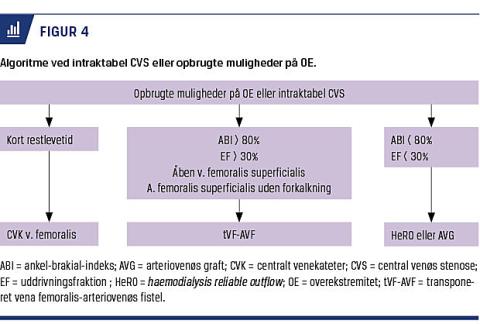 Hos patienter, hvor der er opstået intraktable CVS eller okklusioner i vena cava superior eller bilateralt i vena subclavia/vena brachiocephalica, skal der findes en anden dialyseadgang. Det samme gælder for den patientgruppe, hvor der ikke er flere muligheder på overekstremiteterne på grund af opbrugte vener efter talrige VA. Forinden skal muligheden for peritonealdialyse selvsagt overvejes.