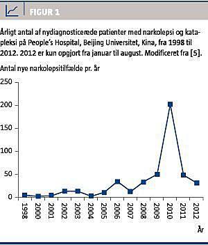 Særligt interessant er en tilsvarende øget narkolepsiforekomst, der er fundet hos ikkevaccinerede børn i Kina året efter pH1N1 (Figur 1) [5]. I studiet beskrives sygdomsdebut af narkolepsi hos op mod 500 patienter i årene 1998-2012, hvilket har kunnet opgøres med stor præcision, fordi det kliniske billede hos asiatiske patienter ofte er mere ekstremt med udtalt katapleksi end hos europæiske patienter. Omend en endelig kausal sammenhæng mellem pH1N1-vaccination/virus og udviklingen af narkolepsi stadig ikke er påvist, er håbet nu, at forskning inden for dette område vil føre til fornyet indsigt i patogenesen bag narkolepsi.