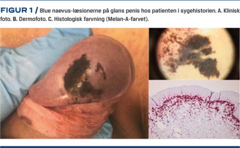 Litteratur om pigmenterede forandringer på glans penis er sparsom og omfatter tilstandene naevi, melanomer, lentiginøse elementer, seboroiske keratoser og karcinomer. Kun i enkelte kasuistikker beskrives blue naevi, som defineres som en benign neoplasi med inkomplet migration af melanocytter, hvilket medfører, at de forbliver dybt i dermis. Et blue naevus kan være medfødt eller erhvervet. Prævalensen er stigende igennem puperteten [1] og ses hyppigere hos asiater end hos andre befolkningsgrupper.