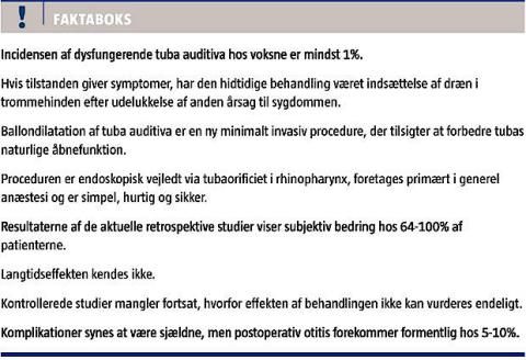 Ballondilatation af det eustakiske rør synes at have et væsentligt potentiale hvis de provisoriske resultater er prædiktive for kommende mere omfattende prospektive studier, der er på vej i skrivende stund.