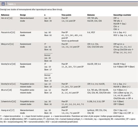 Immunsystemet efter laparoskopisk versus åben kirurgi