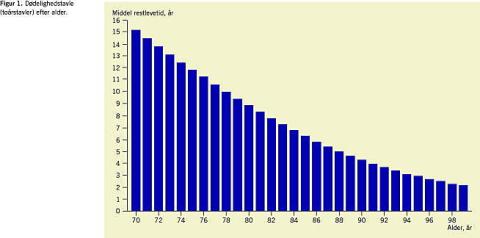 Den gennemsnitlige levealder er stigende, og 30% af brystkræftpatienterne, svarende til over 1.200 tilfælde årligt i Danmark, er ≥ 70 år på diagnosetidspunktet. Gruppen er heterogen, idet der med stigende alder følger øget komorbiditet [1]. Dog kan mere end halvdelen af alle 80-årige kvinder se frem til at fejre deres 88-års-fødselsdag (Figur 1 ). I kontrollerede undersøgelser af behandlingen af primær brystkræft har man koncentreret sig om patienter under 70 år. Det har medført mangel på evidensbaserede retningslinjer for gruppen over 70 år, af hvem en meget stor del ikke modtager samme behandling som de yngre, hyppigt med baggrund alene i deres alder [1-3]. Vi har foretaget en gennemgang af litteraturen med henblik på at afklare, hvilke særlige retningslinjer der bør anbefales for behandling af ældre kvinder med brystkræft.