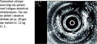 Transrektal ultralydskanning viste hos tre kvinder med tidligere fødselslæsion en defekt fortil i eksterne sfinkter, der var større end 20°. Alle tre havde tidligere gennemgået fødsler med perineal udrift. Disse patienter henvistes direkte til specialafdeling med henblik på sfinkterrekonstruktion.