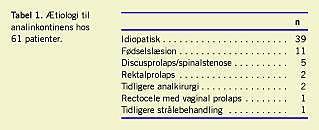 På grundlag af anamnesen er den sandsynlige ætiologi til inkontinensen som anført i Tabel 1.