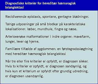 Hereditær hæmorrhagisk telangiektasi (HHT) er en karsygdom med universel manifestation i blodkarrernes små kapillærer; defekten skyldes manglende evne til normal vækst og reparation af endotelcellerne. HHT er en dominant arvelig sygdom med aldersafhængig penetrans. Hovedparten af patienterne debuterer med symptomer i skolealderen, og ca. 75% af patienterne har haft de første symptomer som 25-årige, mens næsten alle patienter har fået symptomer som 50-årige. Der er specifikke genotype-fænotype-manifestationer, men herudover er der betydelig intrafamilliære variationer i den kliniske manifestationsform. Der er fundet to forskellige sygdomsfremkaldende loci: HHT1 og HHT2. Sygdommen viser sig ved telangiektaser i huden og slimhinderne samt arteriovenøse malformationer i indre organer.