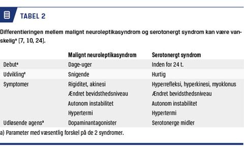 Differentieringen mellem MNS og SS kan være vanskelig. I Tabel 2 er de to tilstande sammenholdt.