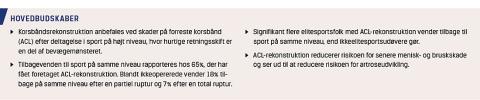 TILBAGEVENDEN TIL SPORT EFTER REKONSTRUKTION AF FORRESTE KORSBÅND