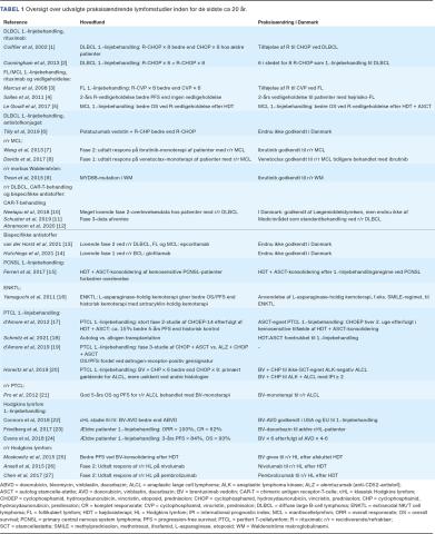 I Tabel 1 vises et udvalg af kliniske interventionsstudier, der inden for de seneste ca. 20 år har været praksisændrende i håndteringen af forskellige lymfomundertyper.