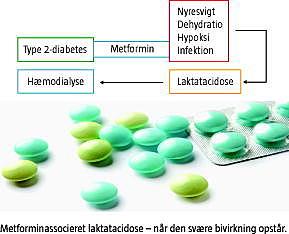 Metformin anvendes i behandling af type 2-diabetes mellitus (T2DM). Fraset hyppige, men oftest tolerable gastrointestinale gener, har metformin få bivirkninger. Metforminassocieret laktatacidose (MALA) er en sjælden, alvorlig bivirkning [1, 2]. MALA er associeret med en mortalitet på 50% [1, 2], men har en bedre prognose end andre tilfælde af laktatacidose [3]. MALA menes at være en følge af laktatakkumulation (øget produktion/nedsat elimination) og kan opstå ved både akutte og kroniske tilstande, der medfører vævshypoksi, f.eks. akut myokardieinfarkt, respirations-, nyre- eller leverinsufficiens og svær infektion/sepsis [4, 5].