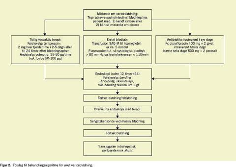 Figur 2 er et forslag til behandlingsalgoritme for akut variceblødning.