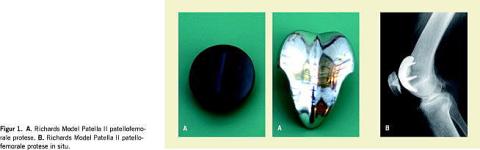 Alle patienter, der blev opereret med en patellofemoral allo-plastik for patellofemoral degenerativ sygdom i årene 1996-1999 på Ortopædkirurgisk Afdeling, Gentofte Hospital, blev inkluderet. Richards Model Patella II-protesen (Smith & Nephew, Richards Inc., Tennessee) blev anvendt hos alle, og kirurgien blev udført af to kirurger Figur 1 A og B .