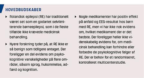 Nyere studier viser, at børn med RE har flere psykokognitive dysfunktioner og komorbiditeter end andre børn på samme alder [12]. Tendensen er derfor, at man går længere væk fra tanken om, at RE er benign [2, 13].