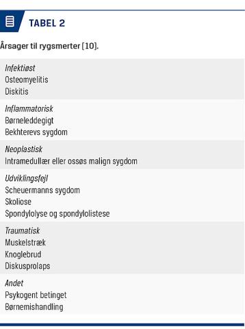 www.sundhed.dk (26. sep 2017).Shah SA, Saller J. Evaluation and diagnosis of back pain in children and adolescents. J Am Acad Orthop Surg 2016;24:37-45.