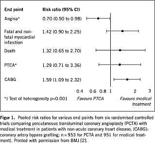 <li>Bucher HC, Hengstler P, Schindler C et al. Percutaneous transluminal coronary angioplasty versus medical treatment for non-acute coronary heart disease: meta-analysis of randomised controlled trials. BMJ 2000;321:73-7.</li>