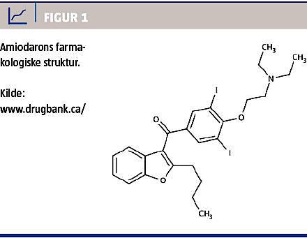 Amiodaron har gennem mange år været en hjørnesten i den medicinske behandling af supraventrikulære og ventrikulære takyarytmier [1]. På trods af øget brug af radiofrekvensablation er amiodaron fortsat hyppigt anvendt med et årligt salg på 473.000 definerede daglige doser, og forbruget har været stigende gennem de seneste år både i Danmark og internationalt [2, 3]. Amiodaron vil i fremtiden forblive en hyppigt anvendt behandling især til patienter med atrieflimren [4], men også ventrikulære takyarytmier, idet man i dag mangler nye antiarytmika, der kan erstatte amiodaron ved strukturel hjertesygdom, f.eks. nedsat venstre ventrikelfunktion.