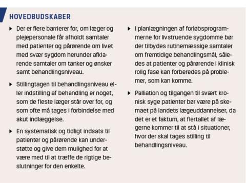En del af behandlingen af kronisk syge patienter er således at tage stilling til, hvornår en behandling skal begrænses, og hvornår den skal ophøre [4, 5].