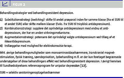 Der eksisterer ikke en generelt accepteret behandlingsalgoritme for BRD, og efter en eventuel optimering af den oprindelige behandling med hensyn til dosis og varighed, findes der flere principielle behandlingsstrategier [4, 8] (Figur 2 ).
