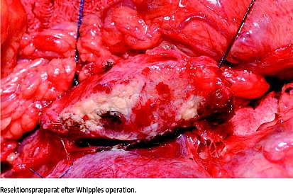 Resultater: Af de 35 patienter blev 30 opereret. I alt 27 af disse fik foretaget en Whippleoperation, hvoraf de 26 var histologisk radikale. Tre patienter fik en aflastende gastroenteroanastomose. Den postoperative mortalitet var på 7%, og den estimerede et-, tre- og femårsoverlevelse var på henholdsvis 74%, 59% og 43%. For patienter uden lymfeknudemetastasering var den estimerede femårsoverlevelse på 58%.