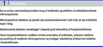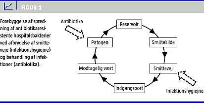 Antibiotikaresistente hospitalsbakterier er et aktuelt, men ikke nyt problem. En sammenhæng mellem brug af antibiotika og resistensudvikling hos bakterier blev allerede varslet ved antibiotikaæraens start i begyndelsen af 1940'erne. Et stærkt stigende forbrug af penicillin (eneste antibiotikum til rådighed) medførte i løbet af det følgende tiår, at hovedparten af Staphylococcus aureus, der var isoleret hos patienter på Londons hospitaler, producerede en penicillinnedbrydende β-laktamase [1]. Syntetisering af et β-laktamasestabilt penicillin (meticillin) skabte en alternativ behandlingsmulighed. Penicillinresistente S. aureus blev imidlertid hurtigt erstattet af både penicillin- og meticillinresistente S. aureus (MRSA). På danske sygehuse så man en tilsvarende spredning af penicillinresistente S. aureus med en tiltagende udbygning af resistensmønstrene som en direkte afspejling af forbruget af antibiotika på sygehusene [2]. Brug af antibiotika selekterer resistente bakterier og skaber en circulus viciousus (her: resistensens onde cirkel), idet antibiotikaresistente bakterier forårsager behandlingssvigt, smittespredning og behandlingsforsøg med andre antibiotika (nyt selektionspres), som igen leder til selektion af hospitalsbakterier med mere komplekse resistensmønstre. Behandling af infektioner kompliceres ydermere ved, at det primære valg af det mest effektive antibiotikum ofte må erstattes af mindre effektivt virkende alternativer.
