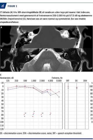 Patienten blev henvist til Øre-næse-halskirurgisk og Audiologisk Klinik på Rigshospitalet en måned efter traumet pga. mistanke om perifer facialisparese, tinnitus og hørenedsættelse. Ved konsultationen berettede han, at hans største gener var tinnitus og anfald af svimmelhed, som opstod, når han vendte sig mod venstre i sengen. Anfaldene var kortvarige (½-1 minut) og af rotatorisk type.