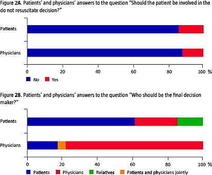 Patienter og læger er enige om, at patienterne skal inddrages i IGVH-beslutningen. I alt 86% af patienterne ønsker indflydelse, mens 88% af lægerne mener, at patienterne skal inddrages. Derimod er de uenige om, hvem der skal træffe den endelige afgørelse. 74% af patienterne ønsker, at de selv eller deres pårørende skal have det sidste ord, mens 83% af lægerne mener, det er en lægelig afgørelse. Lægerne finder indikation for genoplivningsforsøg hos 88% af patienterne. I tilfælde af hjertestop ønsker 69% af patienterne genoplivningsforsøg. Hos de 29 af de 96 patienter (30%), hvor både patient- og lægesvar foreligger, er der uenighed om, hvorvidt genoplivningsfor- søg skal iværksættes.