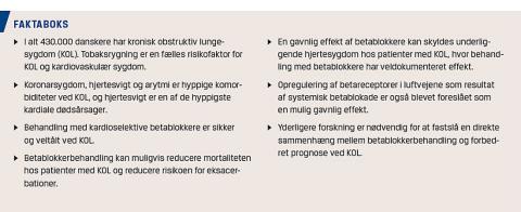 Nyere forskning tyder imidlertid på, at betablokkere kan have gavnlige effekter ved KOL, og formålet med denne artikel er at gøre opmærksom på dette.