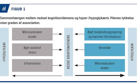 Hypoglykæmi medfører neurologiske skader, herunder nervedød [27]. Hypoglykæmi, som beskrevet ovenfor, kan være en markør for demens hos patienter med DM2. Et multicenterkohortestudie viste, at patienter med DM2 og samtidig demens havde flere diabeteskomplikationer, herunder hypoglykæmiske episoder, end patienter med DM2 uden demens [10]. Sammenhængen mellem hypoglykæmi og demenstilstande er kompleks.