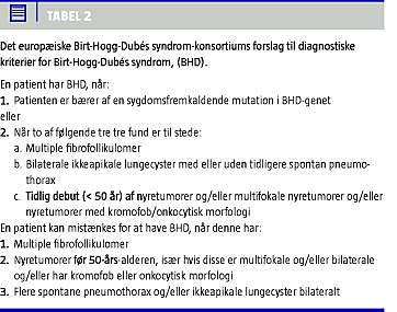 Taksigelser: Vi takker Cathy Sherman fra the Birt-Hogg-Dubé family alliance www.bhdsyndrome.org og Finn Cilius Nielsen for information og frugtbare diskussioner.