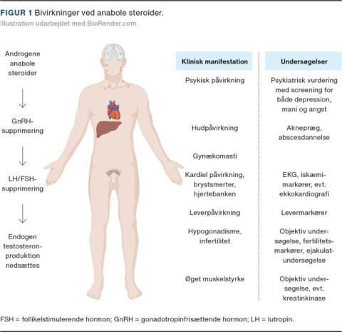 Desværre er brug af syntetiseret testosteron, androgene anabole steroider (AAS), ikke kun en hurtig vej til muskelstyrke og et attraktivt ydre, men også forbundet med en lang række af alvorlige helbredskonsekvenser. Dette er særligt alvorligt, da anabole steroider er vidt udbredt i samfundet og estimeret til have en livstidsprævalens blandt mænd på helt op til 6% [12]. I denne artikel vil vi kort gennemgå bivirkningerne ved brug af AAS.