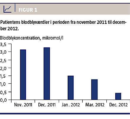 Patienten var en 47-årig mand med velreguleret metforminbehandlet type 2-diabetes og uden tidligere blyeksponering af betydning, hverken erhvervsmæssigt, i fritiden eller fra rygning.