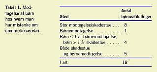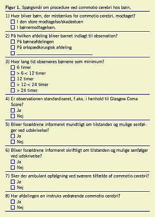 Det er vores indtryk, at varetagelsen af børn med commotio cerebri varierer i Danmark. Tilsvarende er dokumenteret for Sverige i en svensk undersøgelse [11], og dette er baggrunden for undersøgelsen. Det er håbet, at den kan give inspiration til etablering af evidensbaserede kliniske vejledninger på alle landets børneafdelinger.